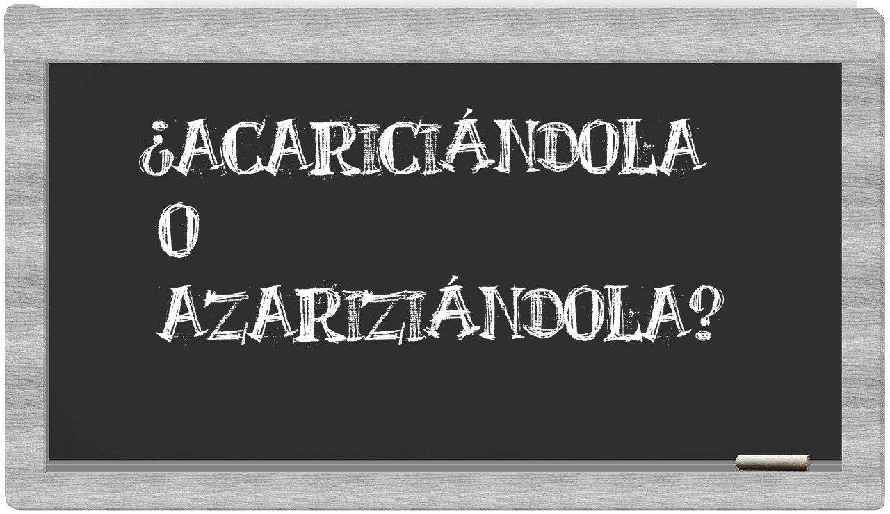 Cuando se plantee la elección entre el término acariciándola y azariziándola, es fundamental que no titubees, puesto que es únicamente acariciándola la que se encuentra debidamente registrada en el Diccionario de la Real Academia Española, mientras que azariziándola carece de reconocimiento oficial.