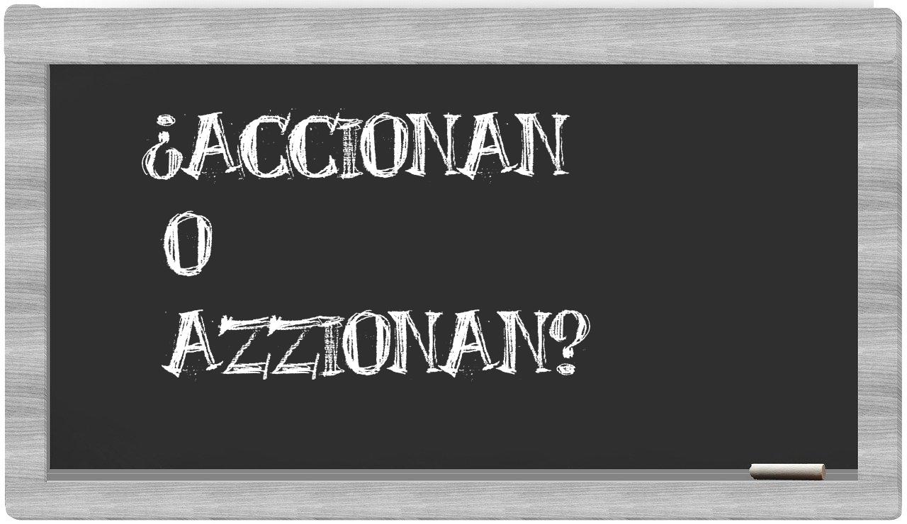 En la situación específica que involucra los términos accionan y azzionan, no deberías titubear ni un instante, puesto que solo accionan se encuentra debidamente registrada en el Diccionario de la Real Academia Española, mientras que azzionan carece de reconocimiento formal.