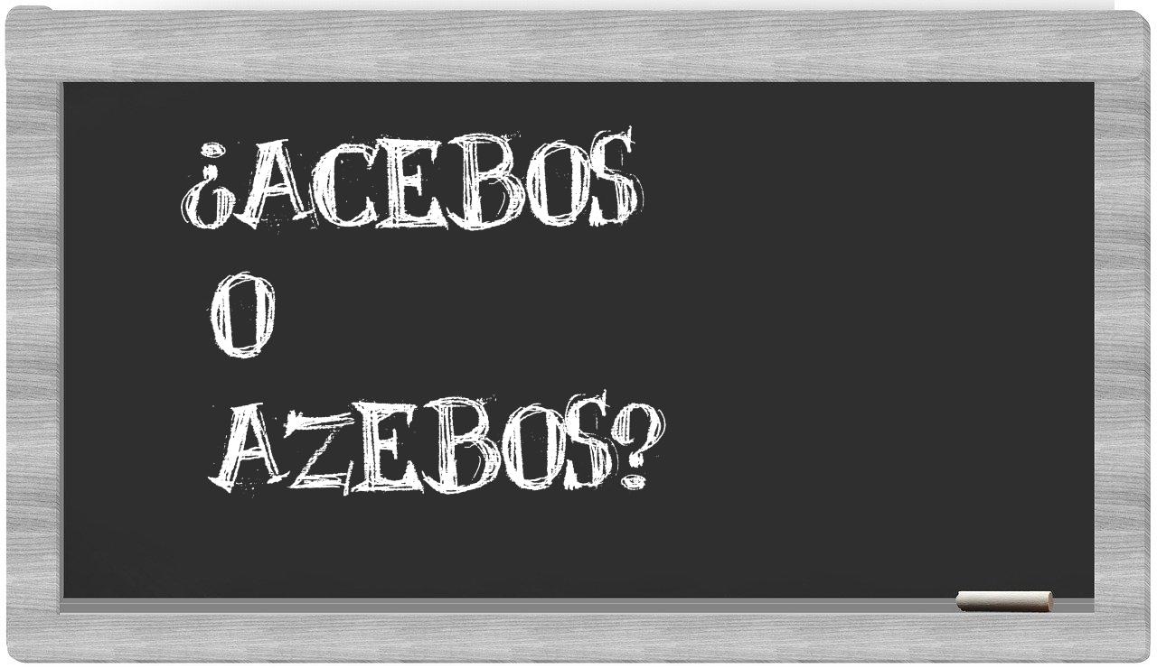 Cuando se trata de la elección entre acebos y azebos, no deberías titubear, puesto que únicamente acebos es la opción correcta según las normas ortográficas. Por otro lado, azebos no figura en el Glosario de la Real Academia Española.