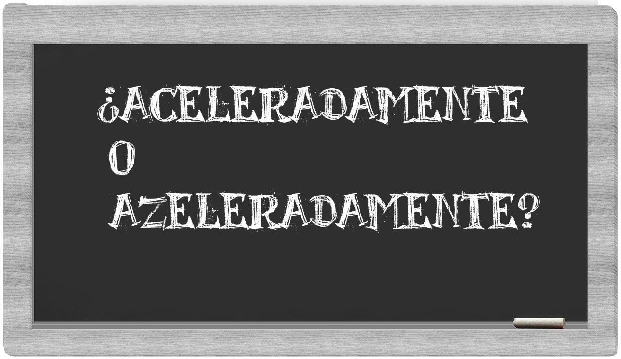 Cuando se trata de las expresiones aceleradamente y azeleradamente, es importante que no vaciles, pues únicamente aceleradamente está en su forma adecuada, mientras que azeleradamente no se encuentra registrada en el Diccionario Oficial de la Real Academia Española.