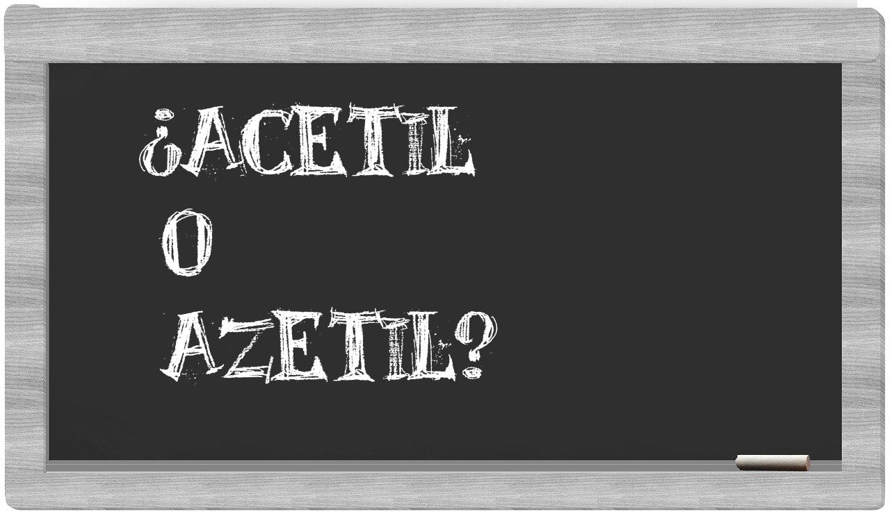 Cuando te enfrentes a las palabras acetil y azetil, nunca vaciles, pues únicamente acetil es la opción que se encuentra debidamente registrada. La palabra azetil no cuenta con respaldo en el Diccionario de la Real Academia Española.