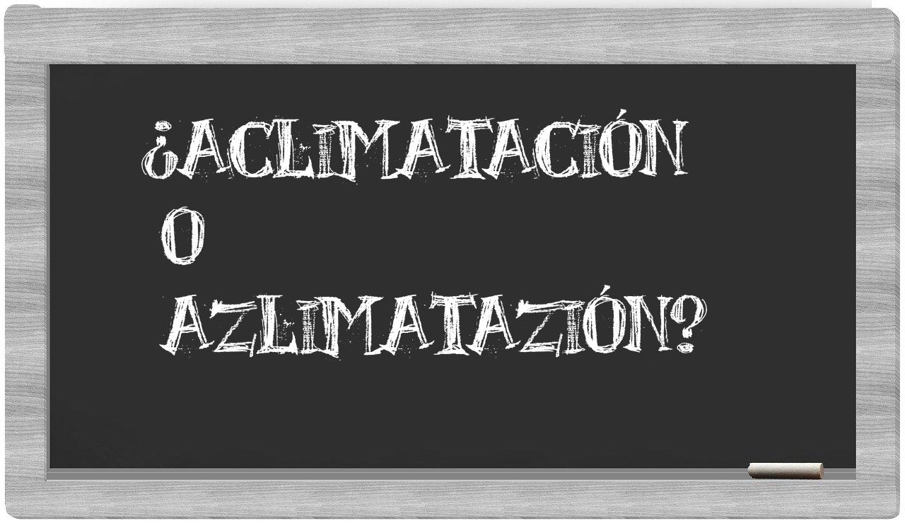 En la situación específica que involucra los términos aclimatación y azlimatazión, nunca deberías contemplar una incertidumbre, puesto que únicamente aclimatación se encuentra correctamente redactado. azlimatazión carece de presencia en el léxico del Diccionario de la Real Academia de la Lengua.