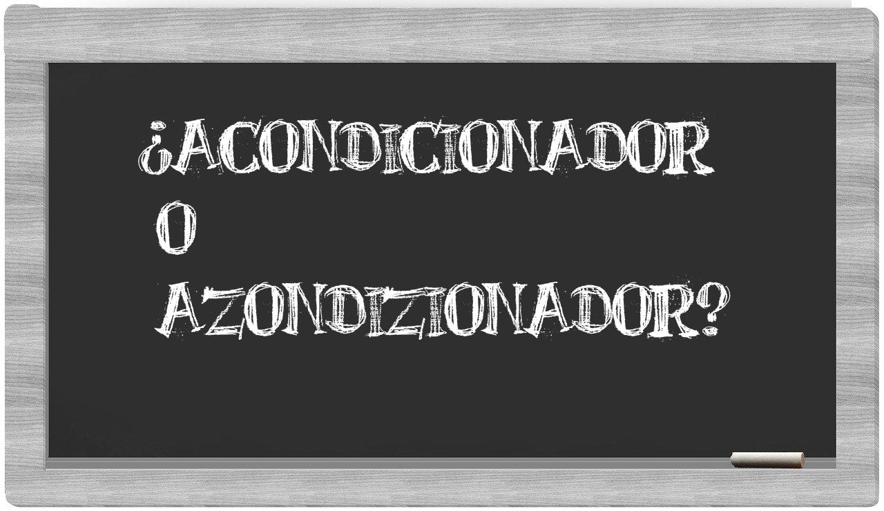 Cuando te enfrentes a la elección entre acondicionador y azondizionador, ten la certeza de que acondicionador es la única opción que se encuentra debidamente correcta; en cambio, azondizionador no figura en el prestigioso Diccionario de la Real Academia Española.