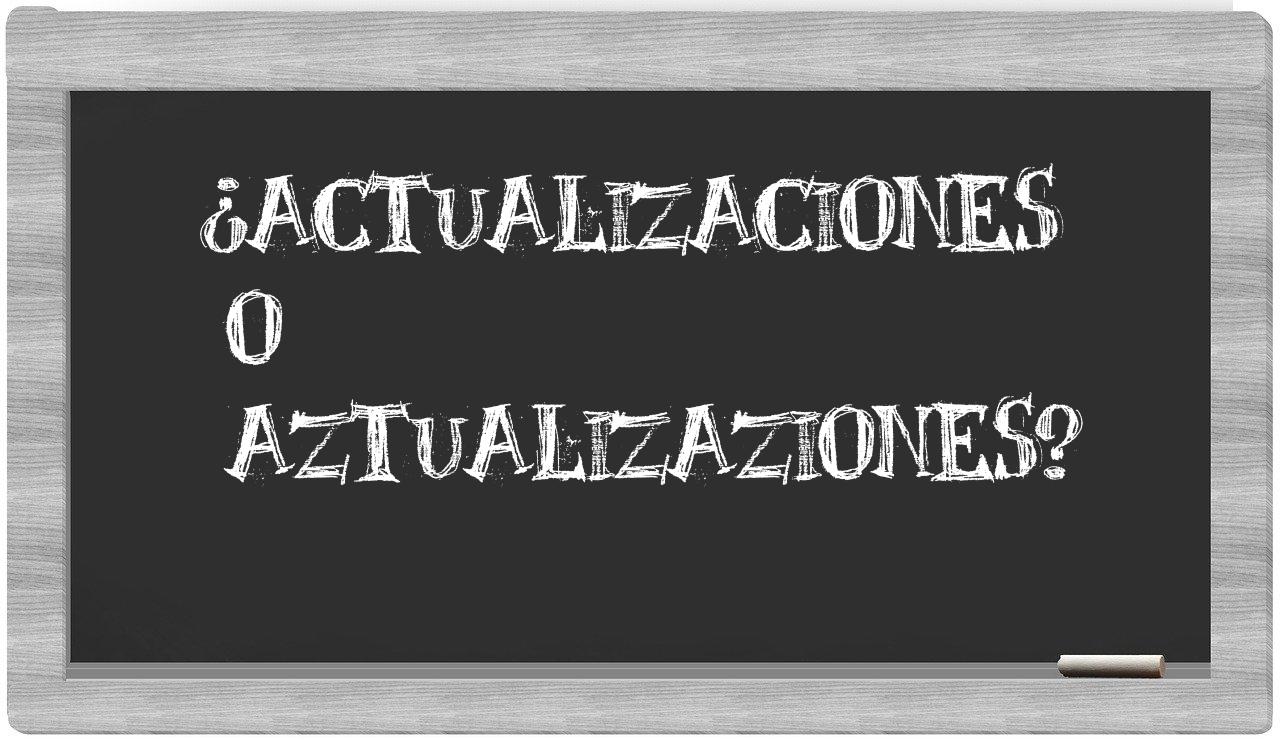 En la situación específica que involucra los términos actualizaciones y aztualizaziones, no deberías titubear en ningún momento, puesto que únicamente actualizaciones se halla debidamente registrada y aceptada. Por otro lado, aztualizaziones no figura en las páginas del Diccionario de la Real Academia Española.