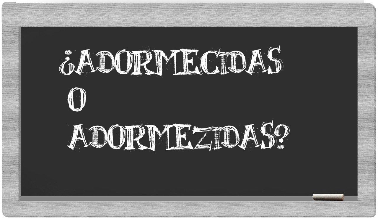 No deberías titubear en la distinción entre adormecidas y adormezidas, puesto que únicamente adormecidas es la que cumple con la ortografía adecuada; adormezidas, lamentablemente, no se encuentra registrada en el prestigioso Diccionario de la Real Academia Española.