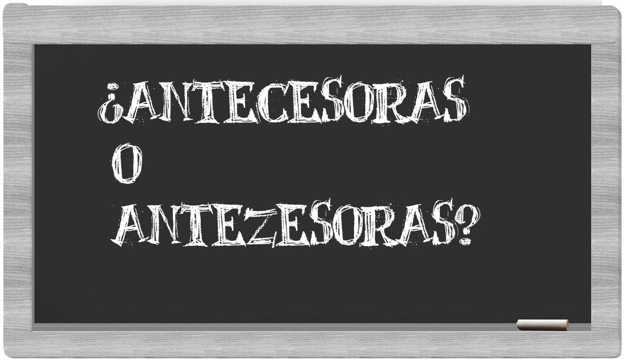 En la situación específica que involucra los términos antecesoras y antezesoras, no deberías titubear en absoluto, puesto que únicamente antecesoras se encuentra correctamente redactado. Por otra parte, antezesoras carece de reconocimiento en el Diccionario de la Real Academia Española.