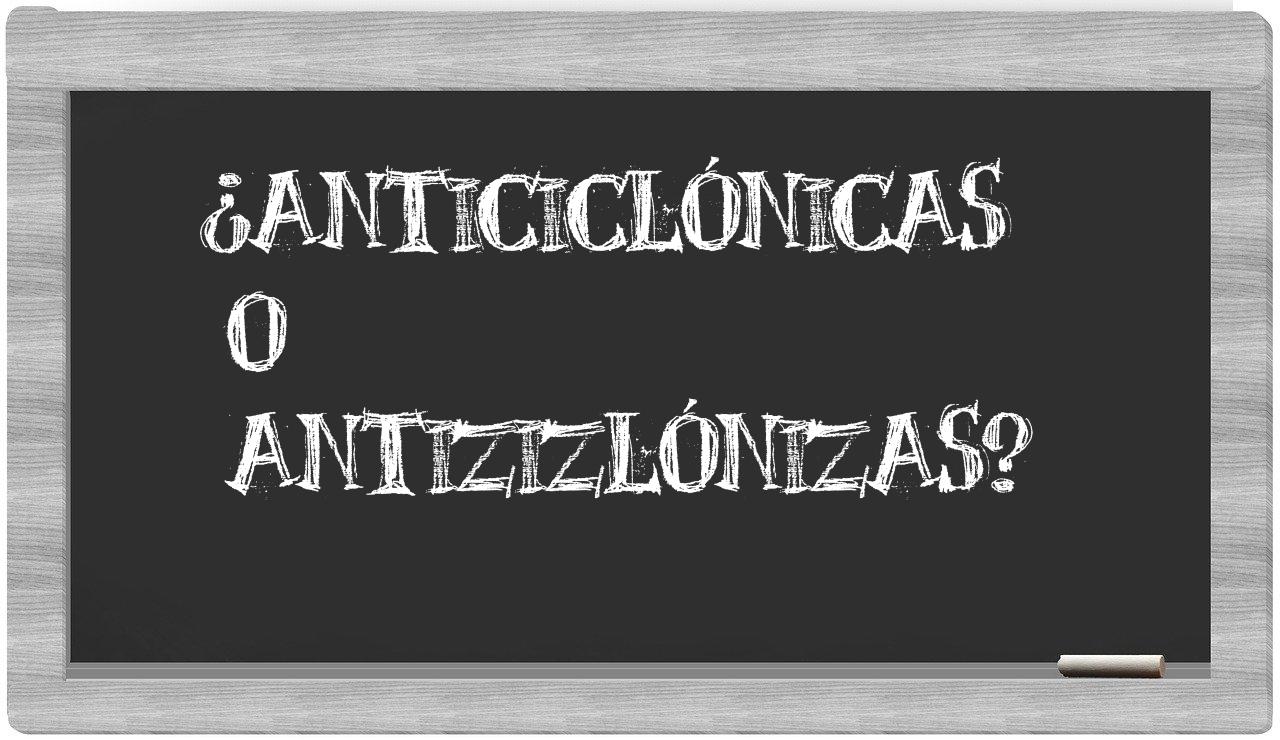 Cuando se trata de las palabras anticiclónicas y antizizlónizas, nunca deberías titubear, puesto que únicamente anticiclónicas se encuentra debidamente registrada; en cambio, antizizlónizas no existe en el repertorio de la Real Academia de la Lengua.