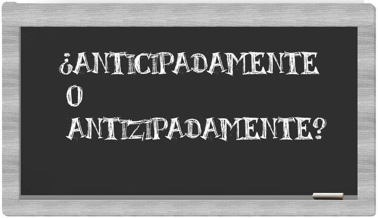 En la situación específica que involucra los términos anticipadamente y antizipadamente, la certeza no debe abandonarte, puesto que únicamente anticipadamente se encuentra debidamente registrada. Por otro lado, antizipadamente no figura en el compendio de la Real Academia Española.