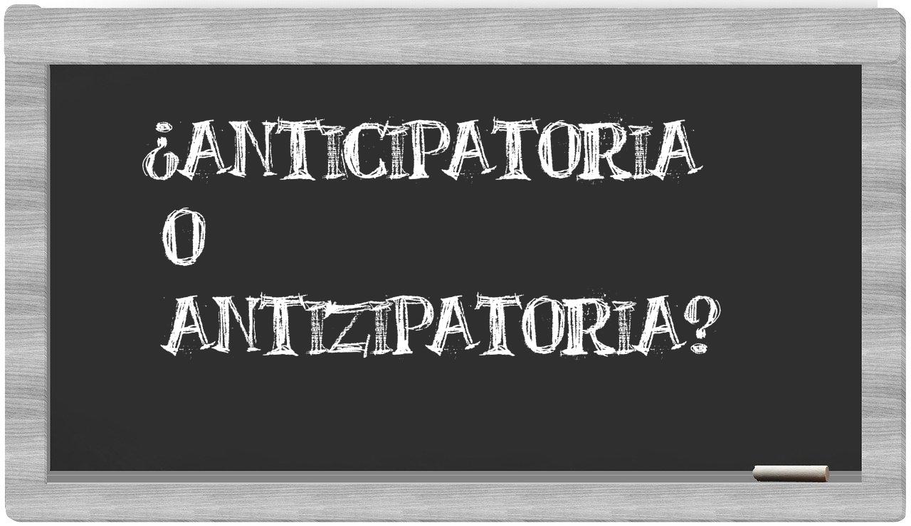 Cuando se trata de las palabras anticipatoria y antizipatoria, es innegable que no debes titubear, porque únicamente anticipatoria la encuentras correctamente escrita. El término antizipatoria, por su parte, es ajeno al Diccionario de la Real Academia Española.