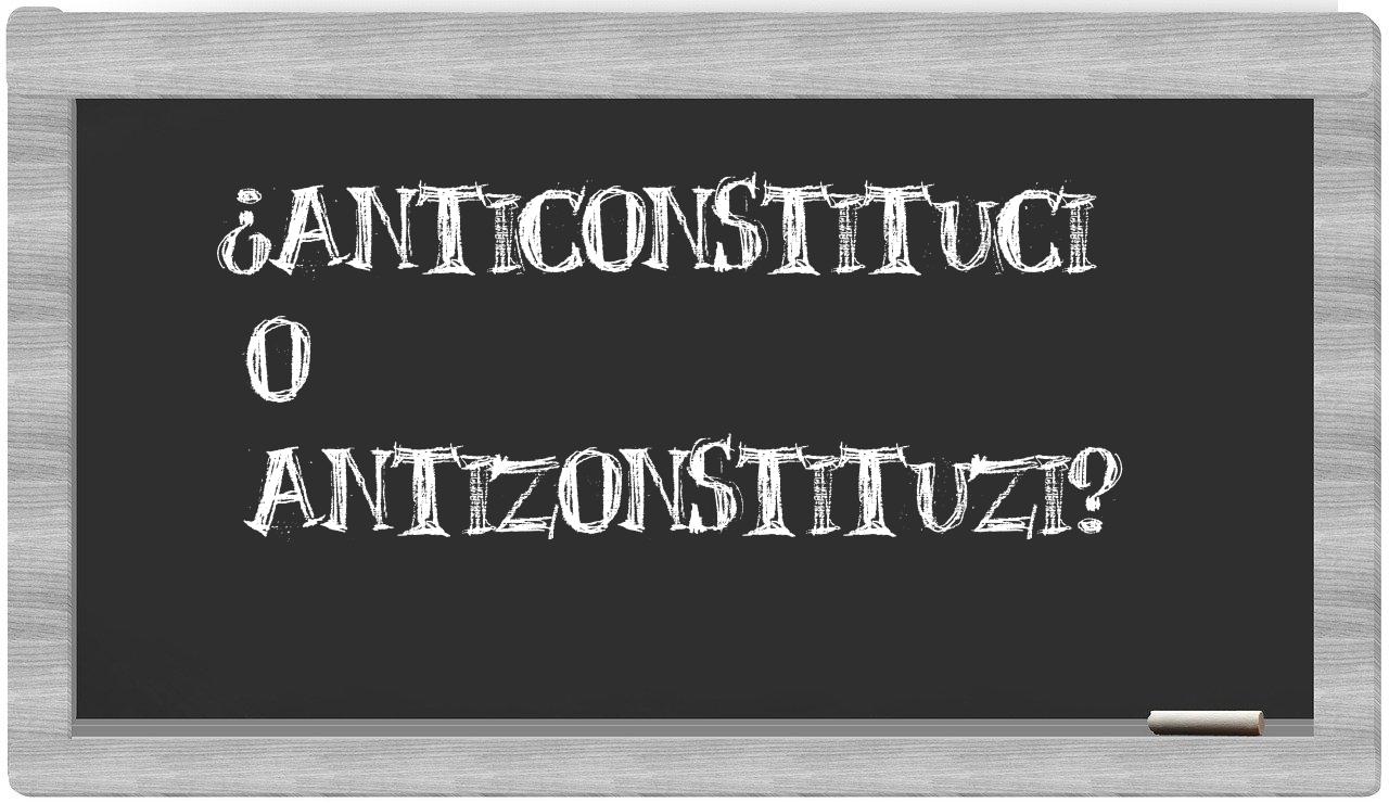 En la situación específica que involucra los términos anticonstituci y antizonstituzi, la certeza no debe abandonarte, puesto que únicamente anticonstituci se encuentra debidamente registrada. Por otro lado, antizonstituzi no figura en el compendio de la Real Academia Española.