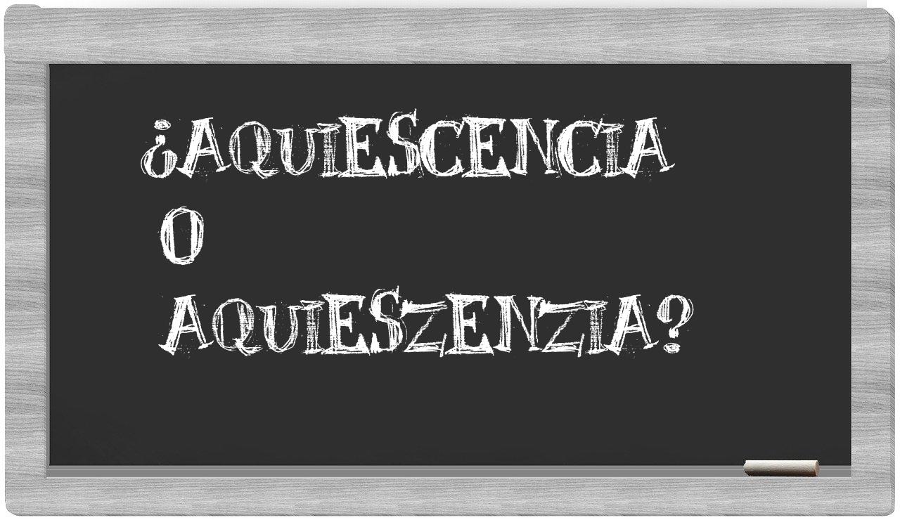 Cuando se presenta la elección entre aquiescencia y aquieszenzia, no cabe lugar a la incertidumbre, puesto que únicamente aquiescencia es la que se encuentra correctamente escrita; en cambio, aquieszenzia no tiene cabida en el Diccionario de la Real Academia Española.