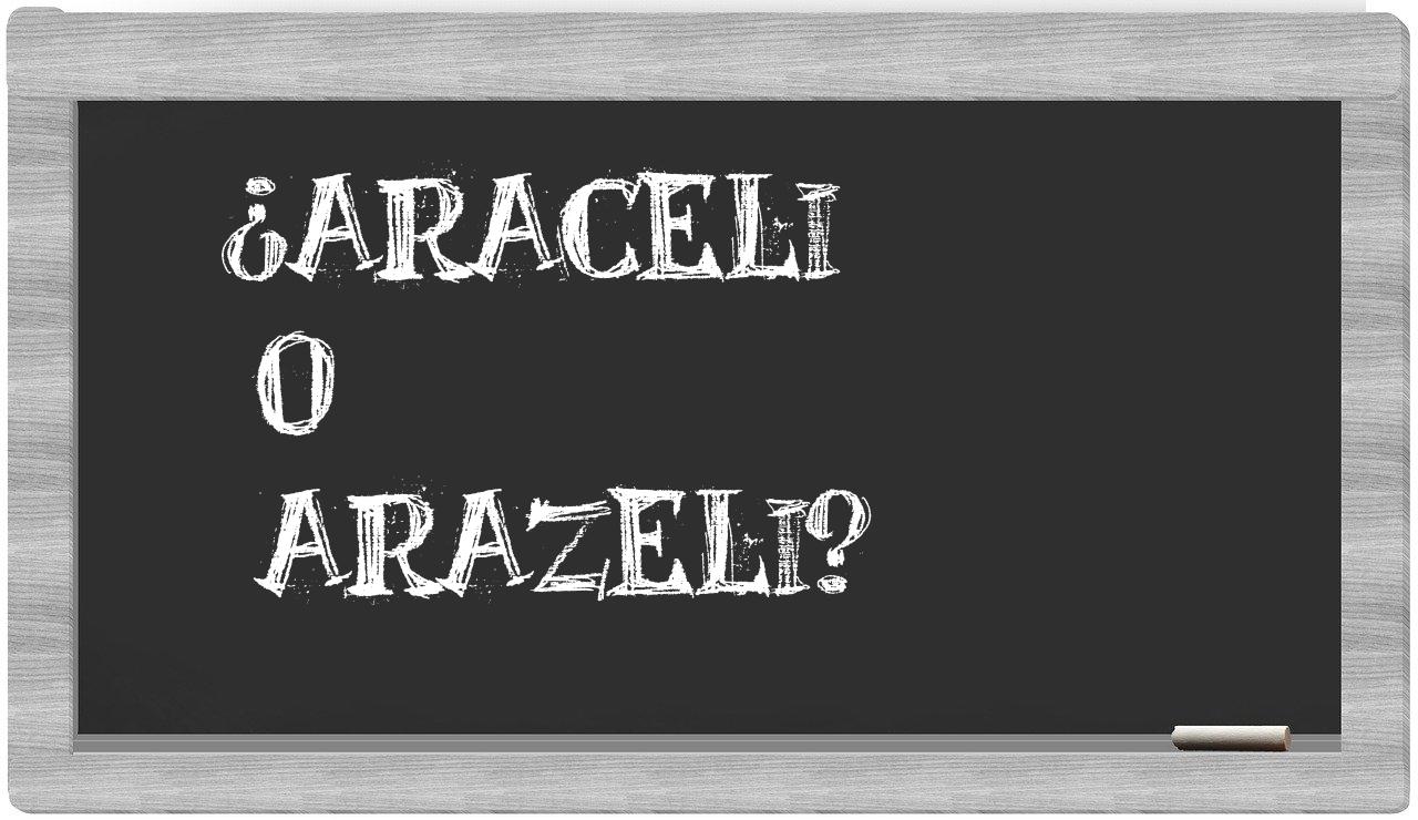 Cuando estés ante la elección entre araceli y arazeli, no permitas que la incertidumbre te asalte, pues es indiscutible que solo araceli es la forma adecuada; por el contrario, arazeli no se encuentra registrado en el Diccionario de la Real Academia Española.