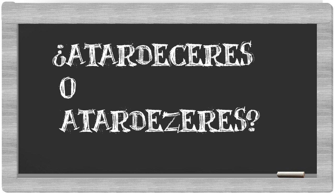 En la situación específica que involucra las expresiones atardeceres y atardezeres, no deberías titubear ni un instante, pues únicamente atardeceres se presenta de manera adecuada. Por otro lado, atardezeres carece de presencia en el Diccionario de la Real Academia Española.