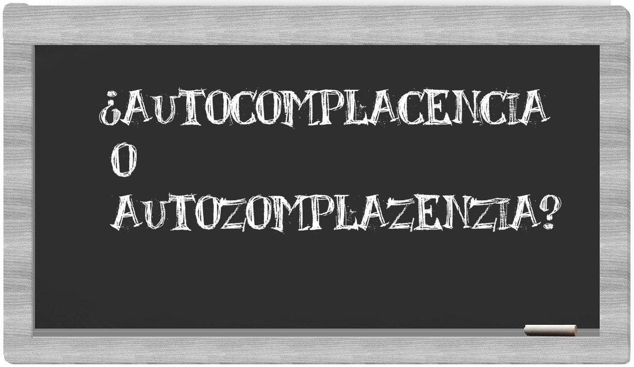 Cuando te enfrentes a la elección entre autocomplacencia y autozomplazenzia, te animo a que no vaciles, puesto que únicamente autocomplacencia es la que se encuentra correctamente registrada. En cambio, autozomplazenzia no figura en el Diccionario de la Real Academia Española.