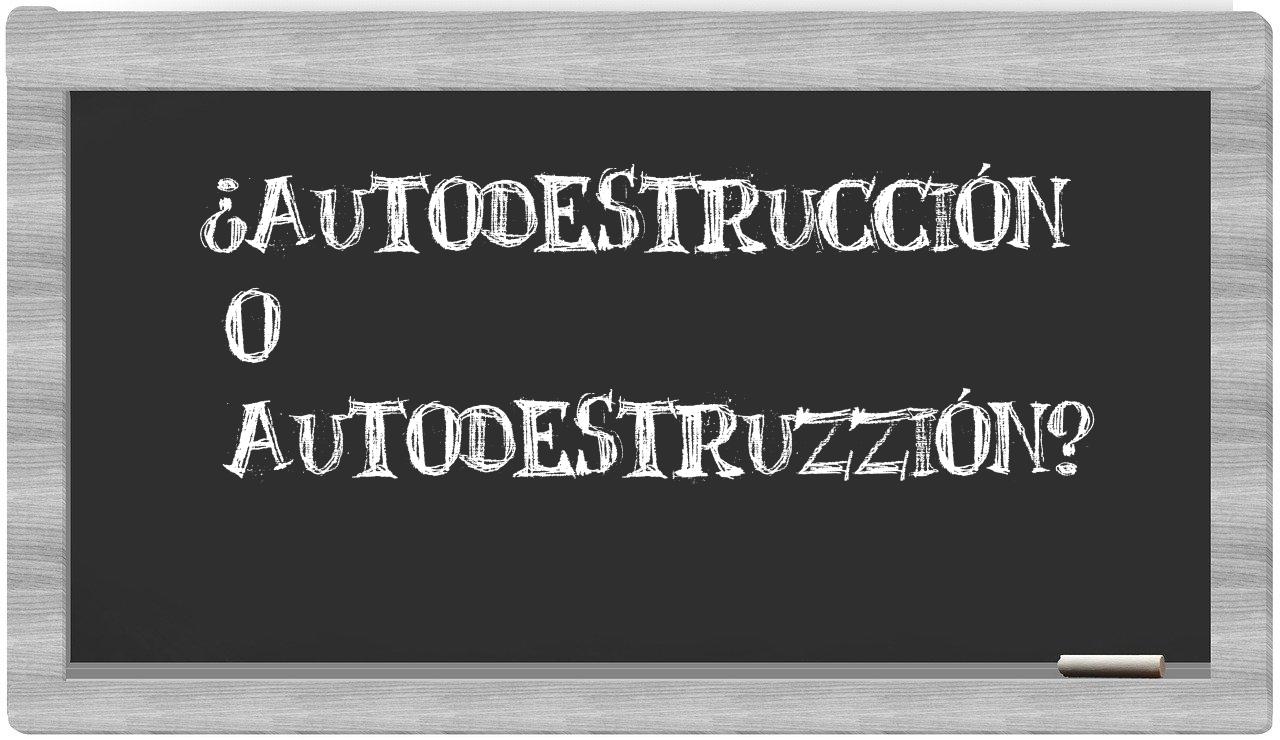 Cuando se presenta el dilema entre autodestrucción y autodestruzzión, es crucial que no vaciles, puesto que solo autodestrucción es la que figura adecuadamente en el léxico. Por otra parte, autodestruzzión carece de reconocimiento en el Diccionario de la Real Academia Española.
