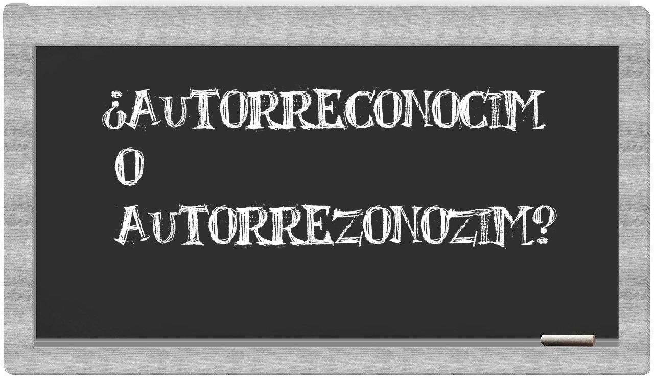 Cuando se trata de distinguir entre autorreconocim y autorrezonozim, no hay motivo para vacilar, porque únicamente autorreconocim es la opción que se encuentra validada; autorrezonozim, en cambio, no figura en el diccionario oficial de la Real Academia Española.