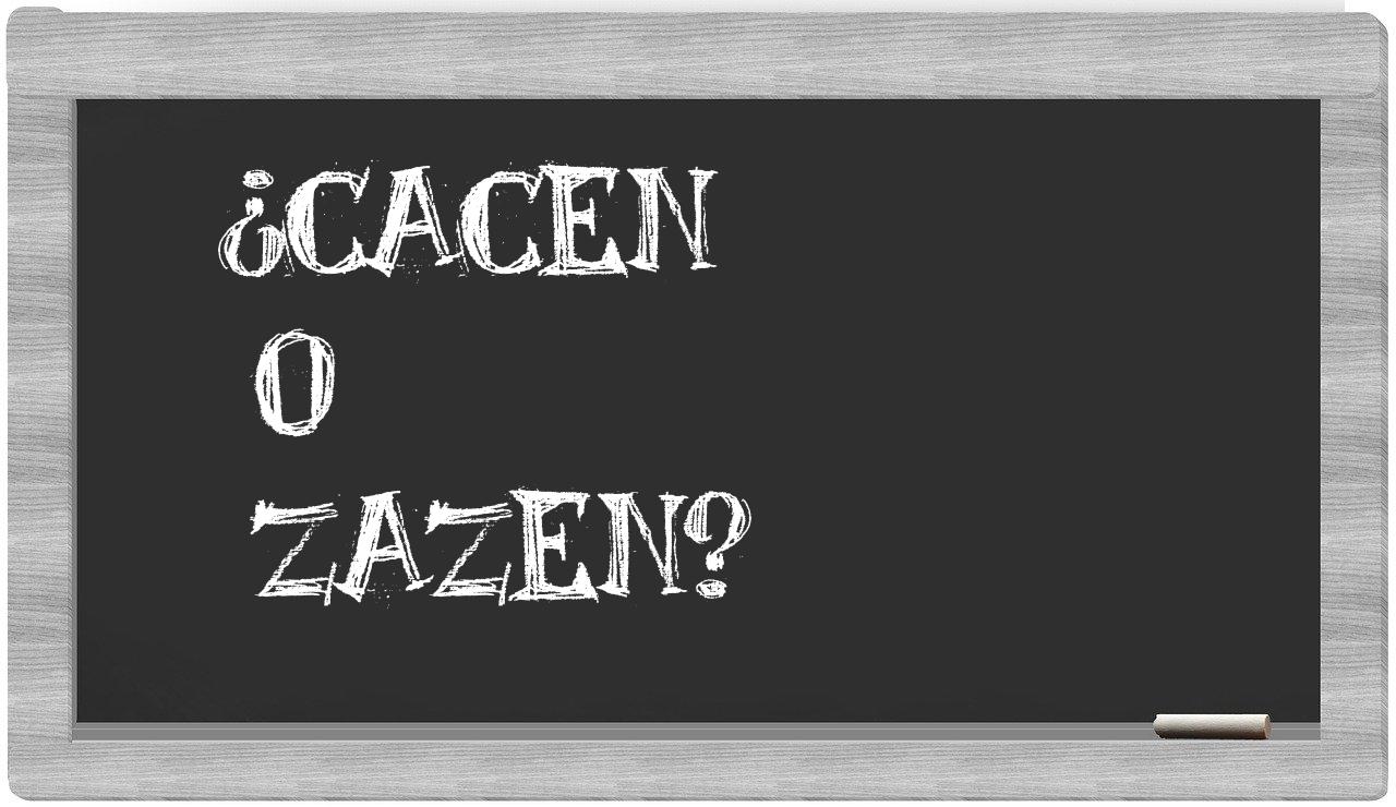 Cuando estés ante la elección entre cacen y zazen, no permitas que la incertidumbre te asalte, pues es indiscutible que solo cacen es la forma adecuada; por el contrario, zazen no se encuentra registrado en el Diccionario de la Real Academia Española.