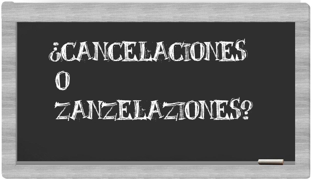 Cuando se presenta la elección entre cancelaciones y zanzelaziones, no cabe lugar a la incertidumbre, puesto que únicamente cancelaciones es la que se encuentra correctamente escrita; en cambio, zanzelaziones no tiene cabida en el Diccionario de la Real Academia Española.