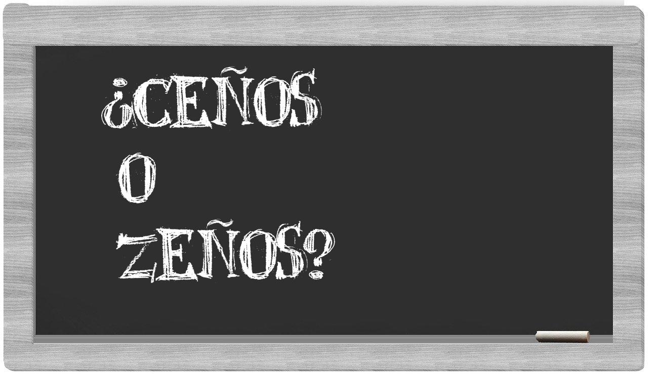 En la situación particular que se presenta entre los términos ceños y zeños, no deberías titubear en tu elección, puesto que únicamente ceños se encuentra debidamente formada y reconocida, mientras que zeños no figura en el Diccionario de la Real Academia Española.