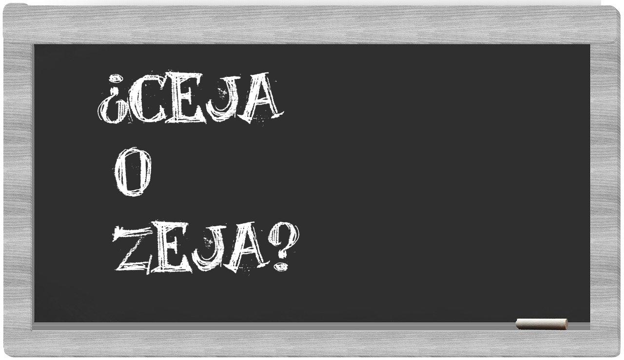 Cuando se trata de la elección entre ceja y zeja, no deberías experimentar incertidumbre, puesto que únicamente ceja se encuentra registrado como una forma correcta, mientras que zeja no figura en el Diccionario de la Real Academia Española.