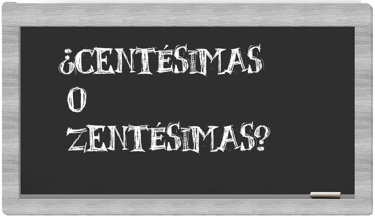 Cuando se trata de la relación específica entre los términos centésimas y zentésimas, no hay lugar para la confusión, dado que únicamente centésimas es la forma adecuada. La palabra zentésimas no figura entre las entradas aceptadas por el Diccionario de la Real Academia Española.