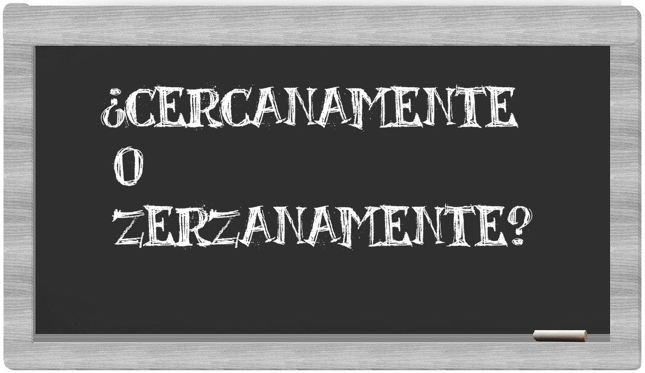No deberías titubear en la distinción entre cercanamente y zerzanamente, puesto que únicamente cercanamente es la que cumple con la ortografía adecuada; zerzanamente, lamentablemente, no se encuentra registrada en el prestigioso Diccionario de la Real Academia Española.