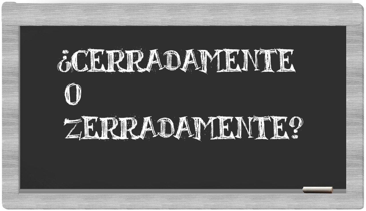 Cuando te enfrentes a las palabras cerradamente y zerradamente, no vaciles en tu elección, puesto que únicamente cerradamente es la que se encuentra debidamente registrada; en cambio, zerradamente no forma parte del léxico de la Real Academia Española.