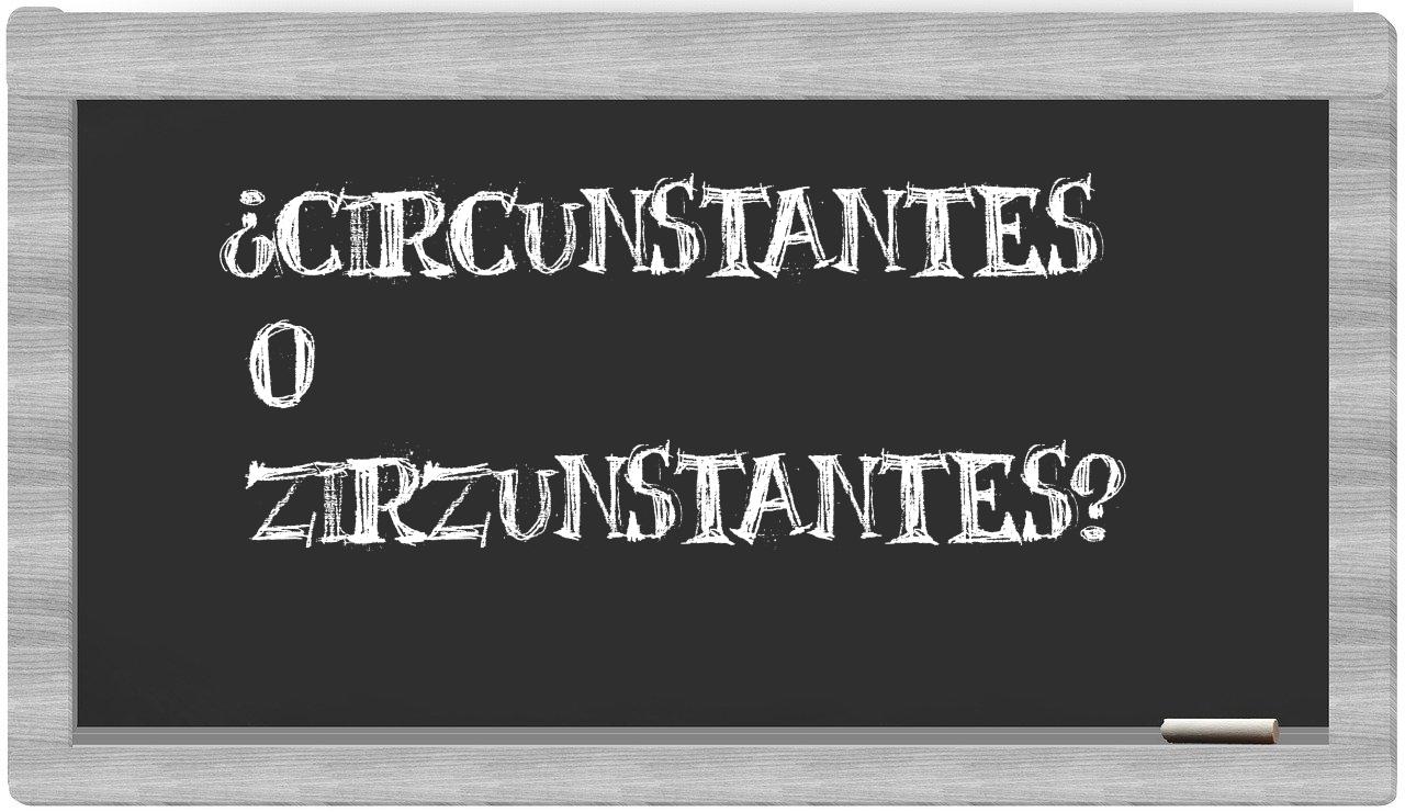 Cuando se trata de distinguir entre circunstantes y zirzunstantes, la elección es clara y sin ambigüedades, puesto que únicamente circunstantes se halla debidamente registrada en el Diccionario de la Real Academia Española, mientras que zirzunstantes queda fuera de su alcance.