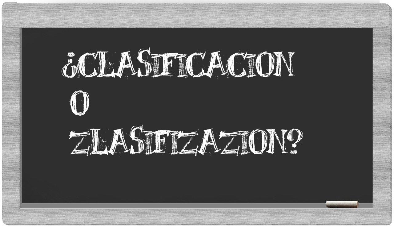 En la situación específica que involucra los términos clasificacion y zlasifizazion, no deberías vacilar, puesto que únicamente clasificacion se presenta como la opción adecuada. Por otro lado, zlasifizazion no se encuentra en el repertorio de la Real Academia Española.