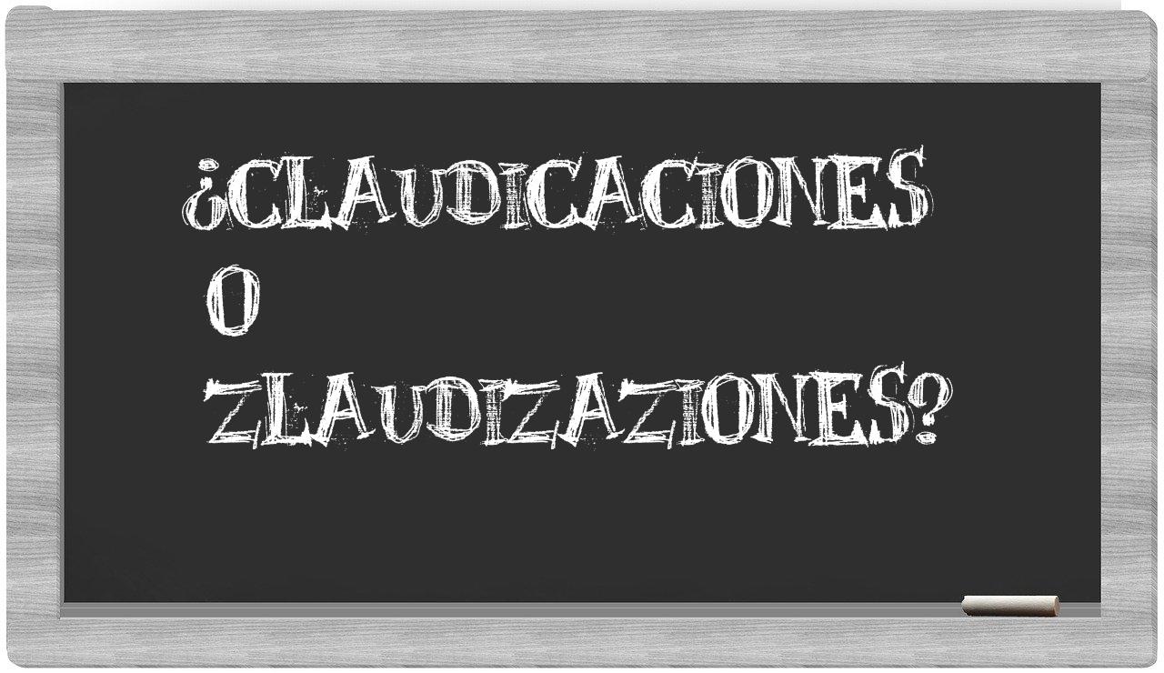 En la situación específica que involucra las expresiones claudicaciones y zlaudizaziones, no deberías titubear ni un instante, pues únicamente claudicaciones se presenta de manera adecuada. Por otro lado, zlaudizaziones carece de presencia en el Diccionario de la Real Academia Española.