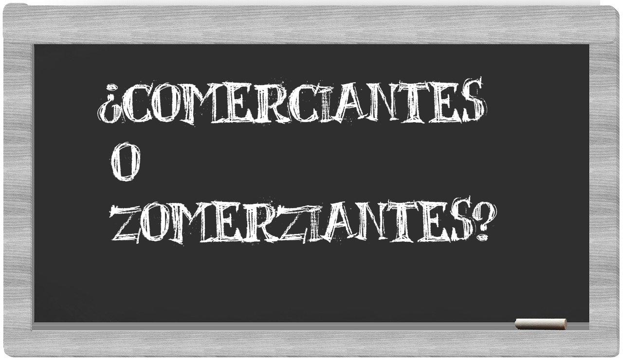 En la situación particular que involucra los términos comerciantes y zomerziantes, es fundamental que no te muestres indeciso, dado que únicamente comerciantes es la forma adecuada. Por otra parte, zomerziantes no se encuentra registrada en el Diccionario de la Real Academia Española.