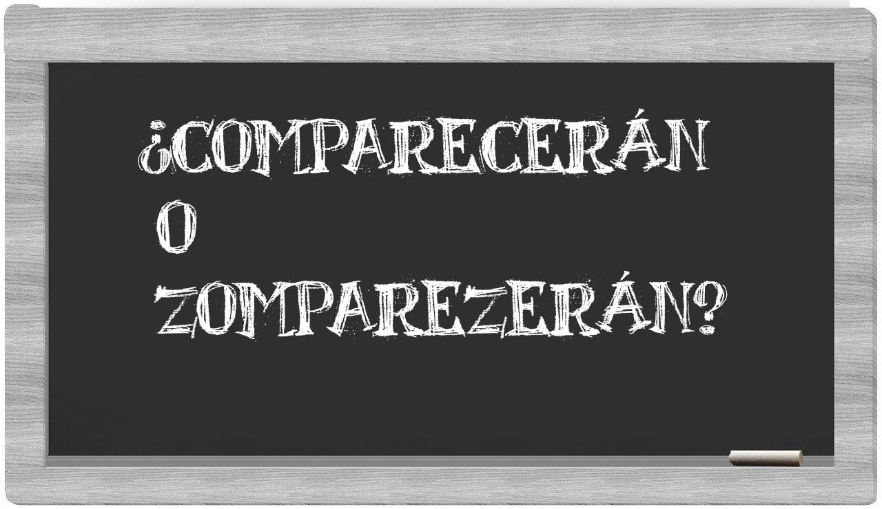 En la situación particular que involucra las expresiones comparecerán y zomparezerán, no deberías titubear, puesto que únicamente comparecerán se encuentra correctamente redactada. Por otro lado, zomparezerán no figura en el Diccionario de la Real Academia Española.