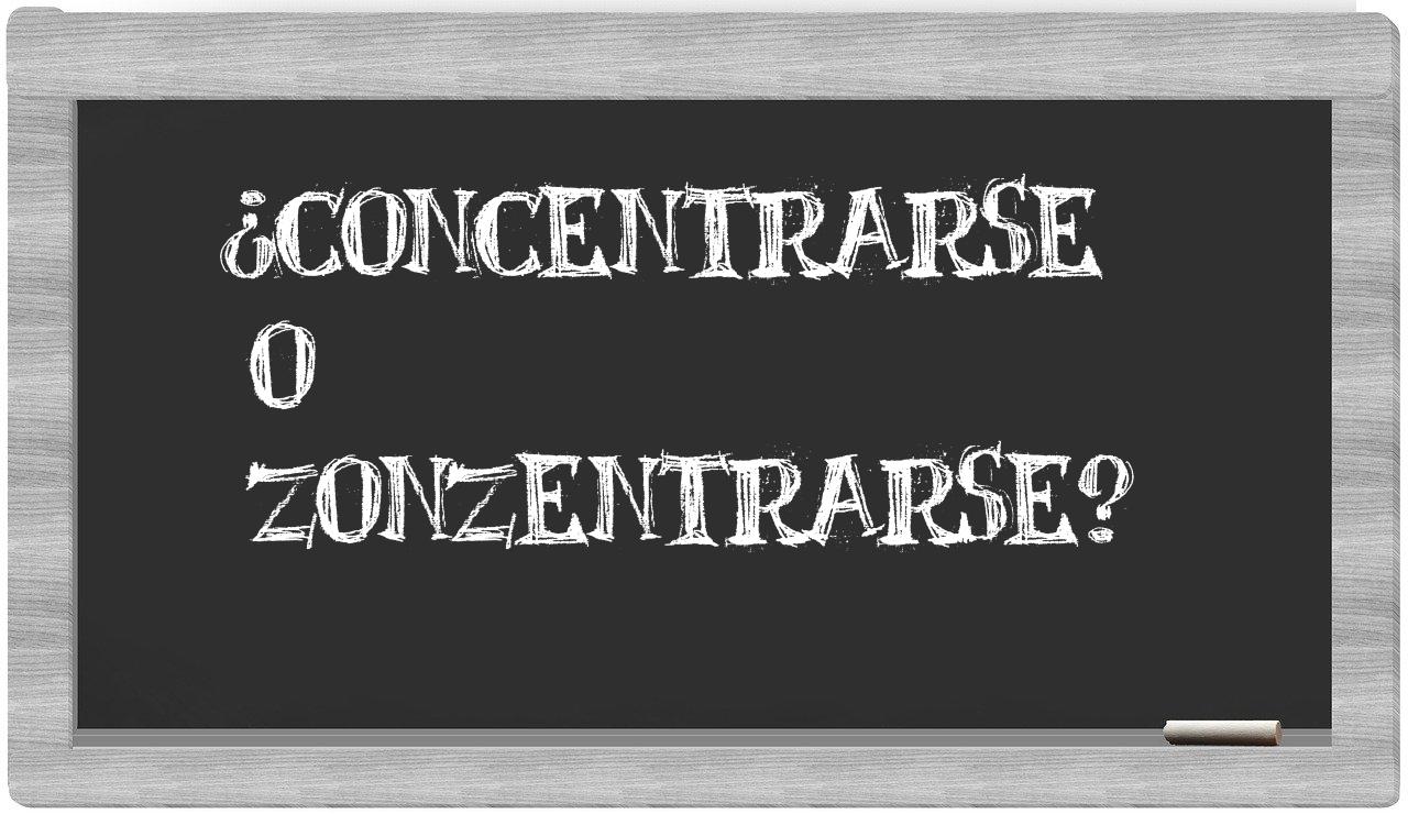 Cuando te enfrentes a la disyuntiva entre concentrarse y zonzentrarse, no permitas que la incertidumbre te abrume, porque únicamente concentrarse es la forma adecuada. De hecho, zonzentrarse no se encuentra registrada en el Diccionario de la Real Academia de la Lengua.