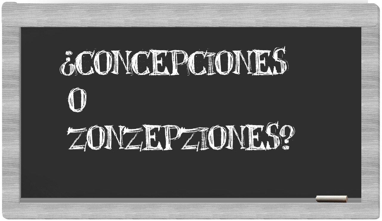 Cuando se presenta la disyuntiva entre concepciones y zonzepziones, es fundamental que no vaciles, puesto que tan solo concepciones es la opción correcta según las normas del idioma, mientras que zonzepziones no figura en el prestigioso Diccionario de la Real Academia de la Lengua.