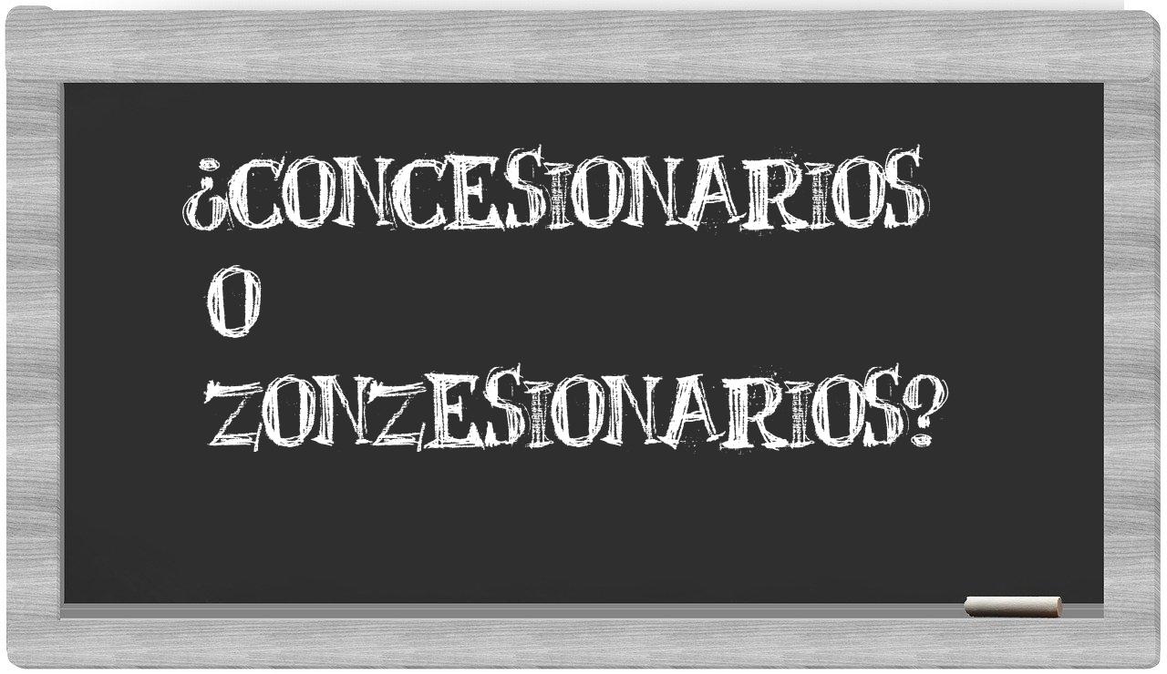 Cuando te encuentres ante la disyuntiva entre concesionarios y zonzesionarios, es fundamental que no titubees, dado que únicamente concesionarios se encuentra correctamente registrada en el diccionario oficial de la lengua española, mientras que zonzesionarios carece de reconocimiento en la obra de la Real Academia.