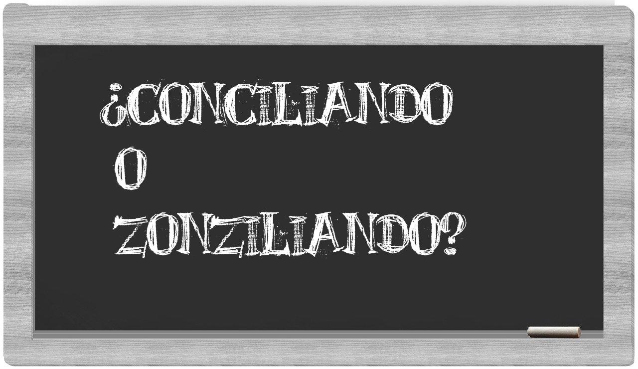 En la situación específica entre los términos conciliando y zonziliando, no deberías cuestionar tu elección, puesto que únicamente conciliando se encuentra registrado de manera adecuada. Por otro lado, zonziliando no figura en el Diccionario de la Real Academia Española.