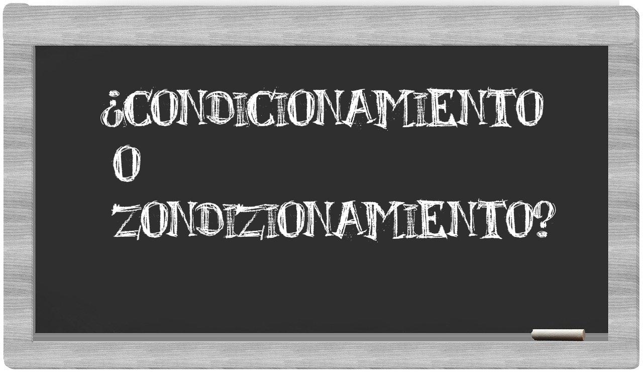 Cuando te enfrentes a la disyuntiva entre condicionamiento y zondizionamiento, no permitas que la incertidumbre te abrume, porque únicamente condicionamiento es la forma adecuada. De hecho, zondizionamiento no se encuentra registrada en el Diccionario de la Real Academia de la Lengua.