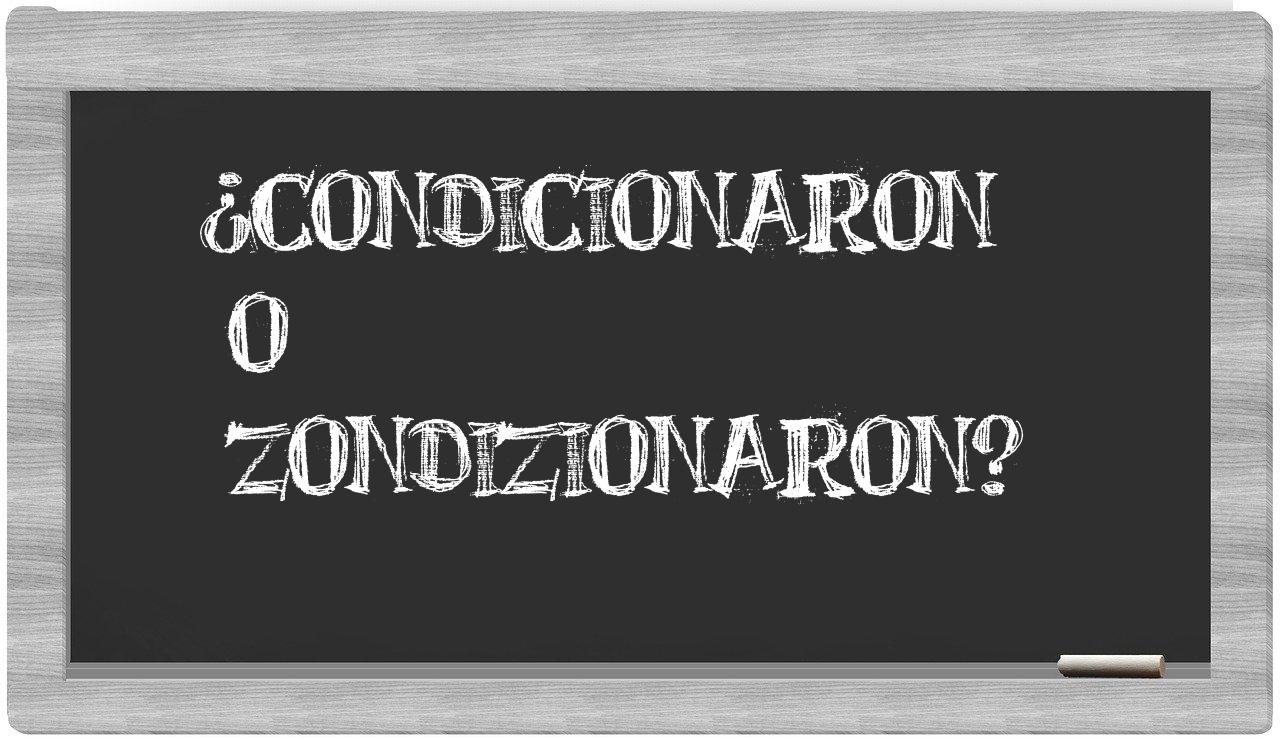 Cuando se presente la elección entre condicionaron y zondizionaron, no caben dudas en tu decisión, puesto que únicamente condicionaron es la forma correcta de escribirlo. La palabra zondizionaron no figura en el Diccionario de la Real Academia Española.