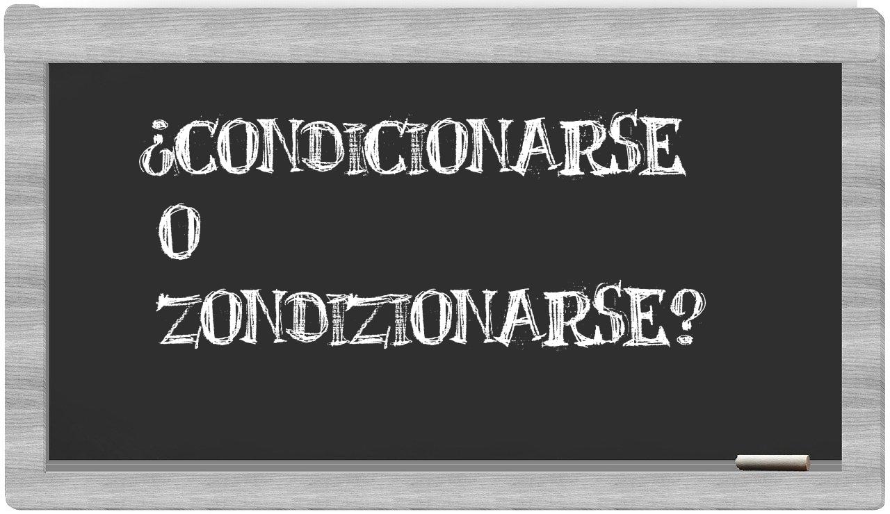 Cuando se establece la comparación entre los términos condicionarse y zondizionarse, no debe haber incertidumbre, dado que es únicamente condicionarse el que se presenta de manera adecuada. Por otro lado, zondizionarse no se encuentra registrado en el Diccionario de la Real Academia Española.