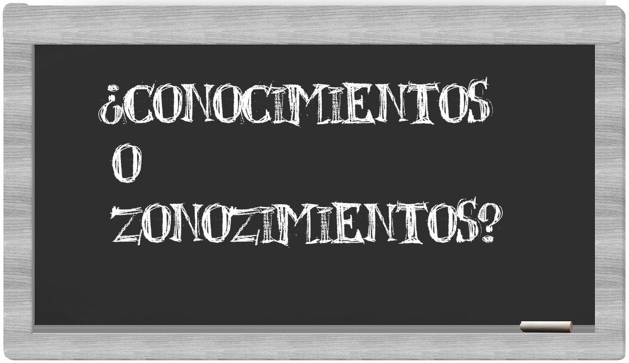 Cuando te enfrentes a la elección entre conocimientos y zonozimientos, no permitas que la incertidumbre te asalte, pues es indiscutible que solo conocimientos es la opción adecuada; zonozimientos, por su parte, no se encuentra registrada en el Diccionario de la Real Academia de la Lengua.