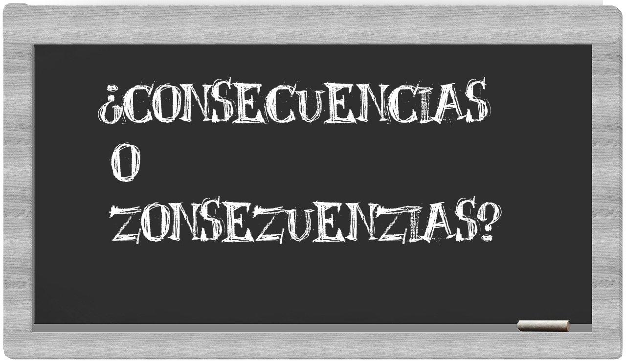 En la situación específica de las palabras consecuencias y zonsezuenzias, no deberías titubear, puesto que únicamente consecuencias se encuentra correctamente redactada. zonsezuenzias, por otro lado, carece de presencia en el Diccionario de la Real Academia Española.