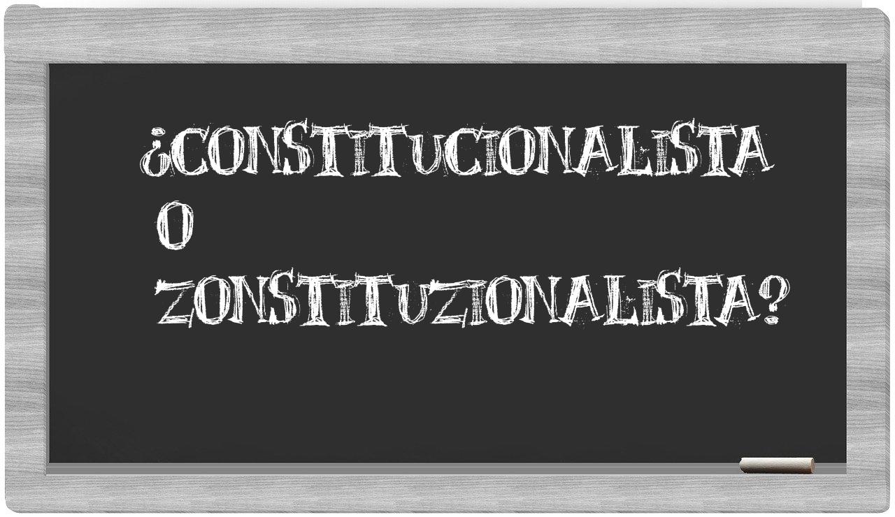 Cuando se presente la elección entre constitucionalista y zonstituzionalista, no caben dudas en tu decisión, puesto que únicamente constitucionalista es la forma correcta de escribirlo. La palabra zonstituzionalista no figura en el Diccionario de la Real Academia Española.