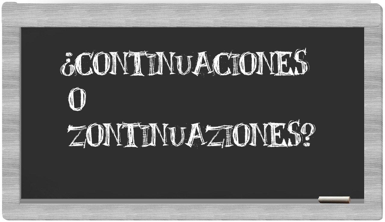 Cuando se confrontan los términos continuaciones y zontinuaziones, es crucial que no titubees, porque únicamente continuaciones se presenta con la ortografía adecuada. De hecho, zontinuaziones no figura en el Diccionario de la Real Academia Española.