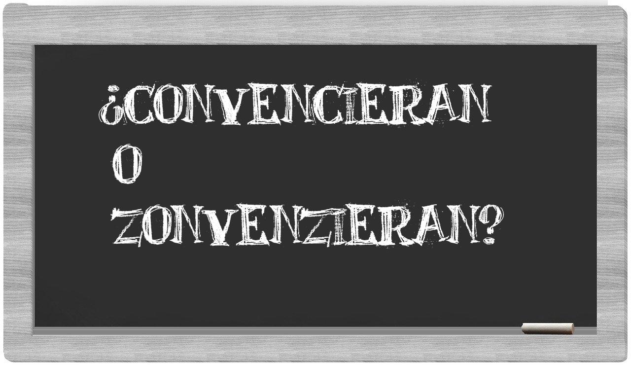 Cuando se trata de la elección entre convencieran y zonvenzieran, no deberías experimentar incertidumbre, puesto que únicamente convencieran se encuentra registrado como una forma correcta, mientras que zonvenzieran no figura en el Diccionario de la Real Academia Española.