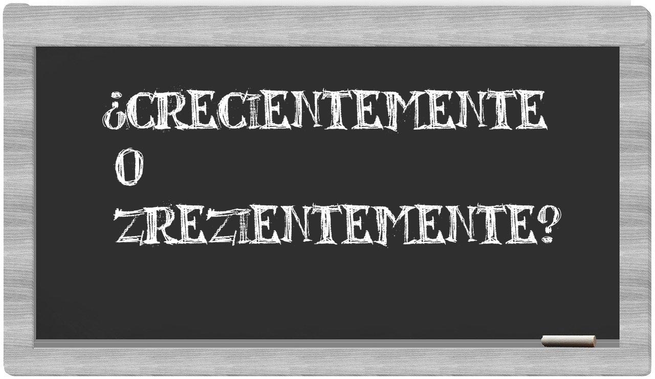 En la situación particular que involucra las expresiones crecientemente y zrezientemente, no deberías titubear, puesto que únicamente crecientemente se encuentra correctamente redactada. Por otro lado, zrezientemente no figura en el Diccionario de la Real Academia Española.
