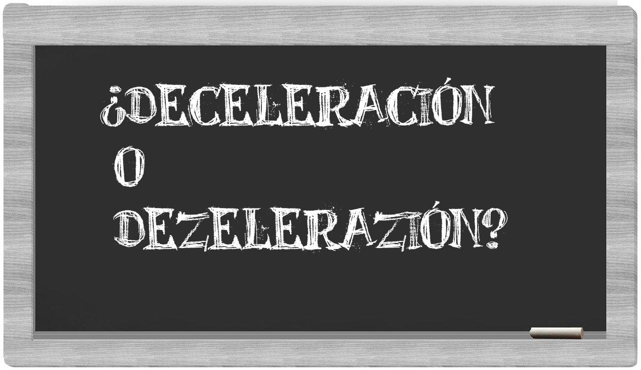 En la situación particular que involucra los términos deceleración y dezelerazión, nunca deberías titubear, puesto que solo deceleración se encuentra debidamente redactado. La palabra dezelerazión no figura en el léxico del Diccionario de la Real Academia Española.