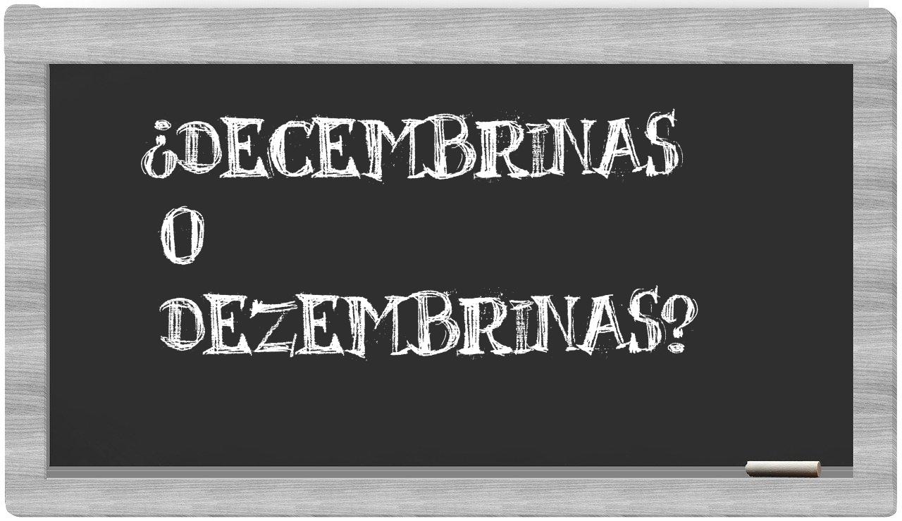 Cuando se trate de la distinción entre decembrinas y dezembrinas, no debería haber vacilación alguna, dado que únicamente decembrinas es el término que cuenta con una correcta redacción. Por otro lado, dezembrinas no figura en el reconocido Diccionario de la Real Academia Española.
