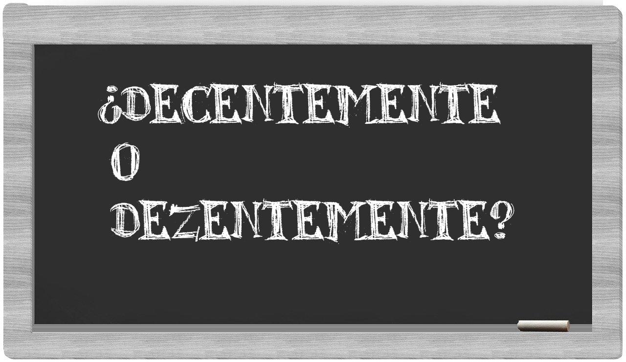 Con respecto a la disyuntiva que surge entre decentemente y dezentemente, es fundamental que no te generen confusión, dado que únicamente decentemente es la forma adecuada de ser escrita. La opción dezentemente no se encuentra registrada en el Diccionario de la Real Academia Española.