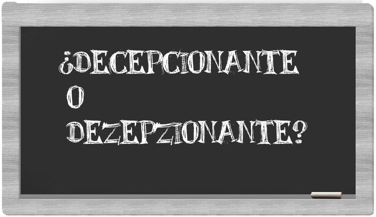 Cuando se trata de las expresiones decepcionante y dezepzionante, nunca deberías titubear, pues únicamente decepcionante se encuentra correctamente documentada; cabe mencionar que dezepzionante no figura en el Diccionario de la Real Academia Española.