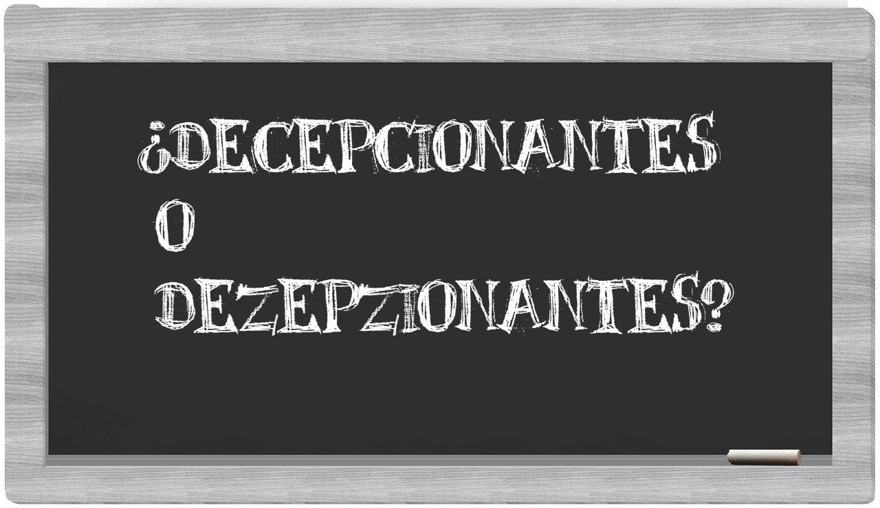 En la situación específica que involucra a decepcionantes y dezepzionantes, la elección debería ser clara y sin vacilaciones, puesto que únicamente decepcionantes se encuentra debidamente registrada en el Diccionario de la Real Academia Española, mientras que dezepzionantes carece por completo de reconocimiento oficial.